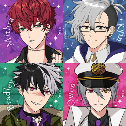 A Word about KyinKyin (Top Right) is just my silly little self-insert OC and now he's become a kenja-sama and clearly he has very questionable taste in wizards, but I'll explain more about that one day...In short: I ship Kyin with all of Sanbaka (but especially Mithra and Owen!) and I do not take it seriously at all and rarely even post about it but I decided I'd make a section about it anyway.---There's not much to Kyin really, he's 29 years old and runs a recording studio for new starting musicians, but somehow or other he got sucked into the Wizard's World to become the Sage!I will draw and write up a proper profile for him at some point, watch this space...